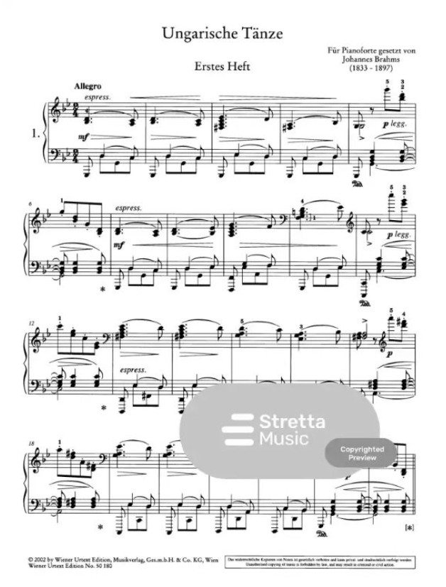 Johannes Brahms: Hungarian Dances - Version For 2 Hands (noty na klavír)
