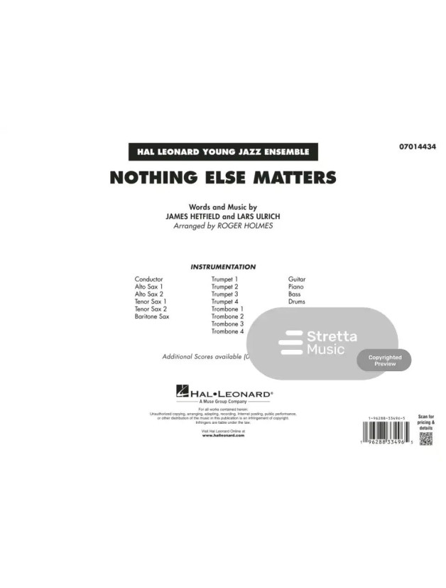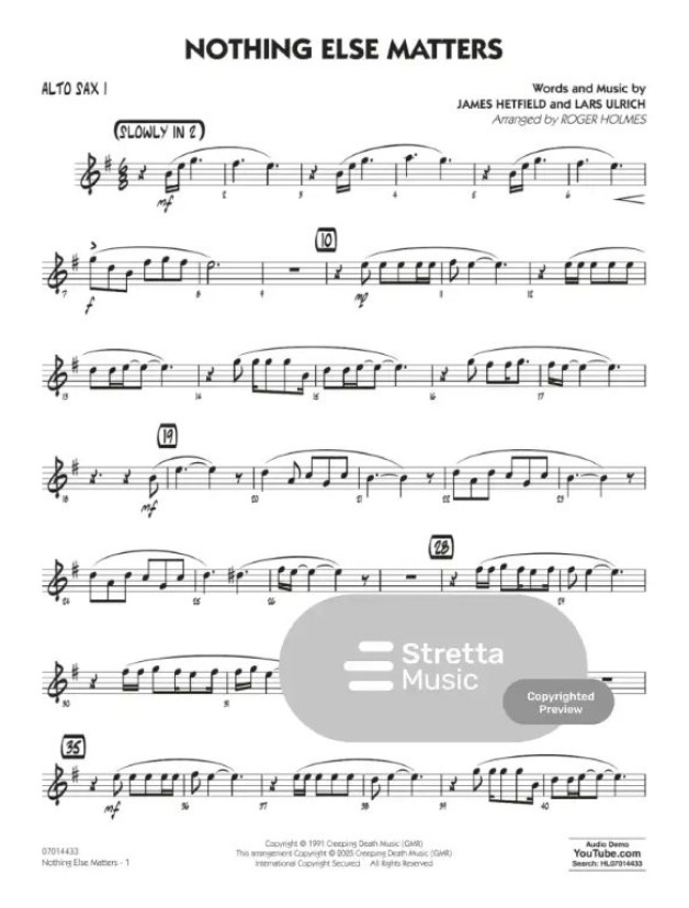 Metallica: Nothing Else Matters (noty pro školní jazzový orchestr, party, partitura)