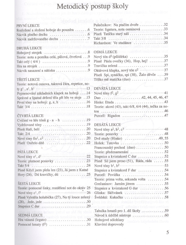 Škola pro nejmladší hobojisty vychází z autorových celoživotních pedagogických zkušeností a je rozvržena do čtyř sešitů. V tomto prvním díle naleznete úplné základy hry na hoboj. Žáci se zde učí ovládat dýchání a dobře tvořit nátisk.