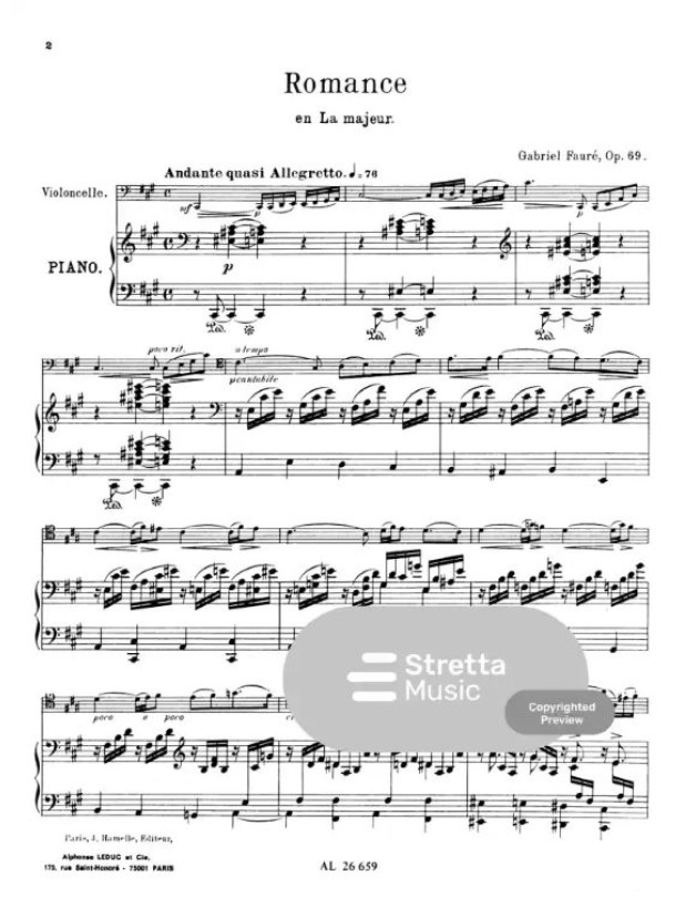 Gabriel Fauré: Romance en La majeur (noty na violoncello, klavír)