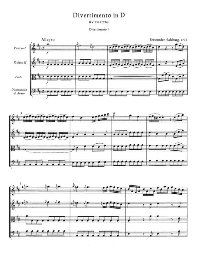 W.A. Mozart: Three Divertimenti for Strings KV 136-138 (noty, studijní partitura)