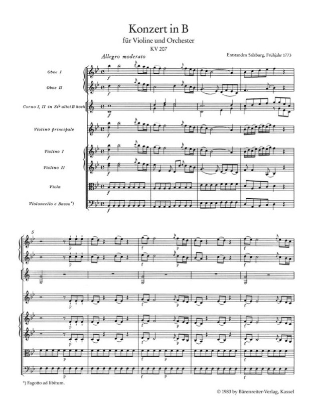 W.A. Mozart: Works for Violin and Orchestra KV 207, 211, 216, 218, 219, 261, 269 (261a), 37 (noty, studijní partitura)