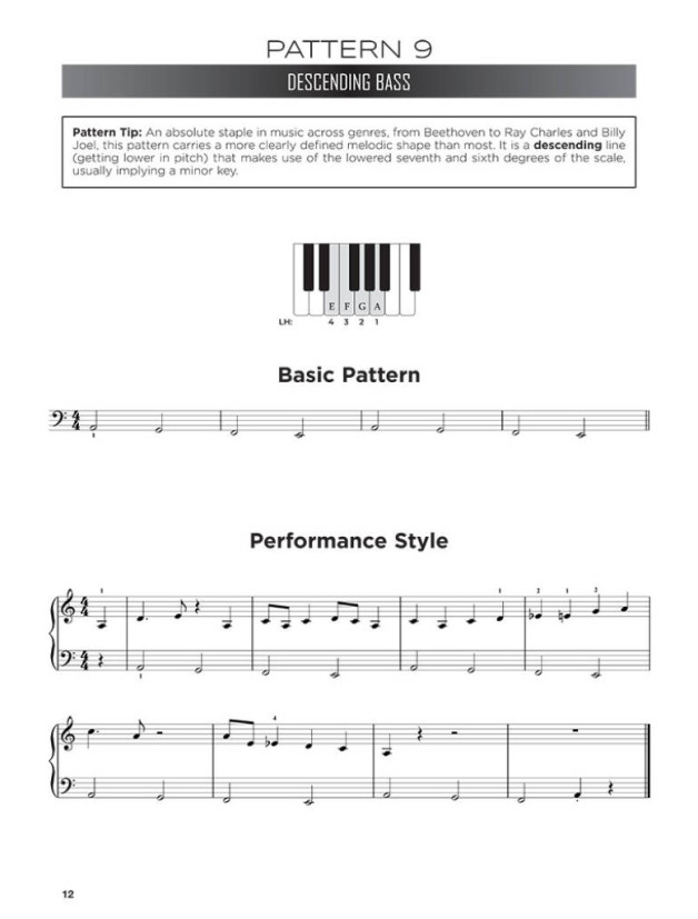 Rozzářete svou levou ruku s těmito základními doprovodnými patterny pro klavír! Pokud s hrou na klavír teprve začínáte, Prvních 50 patternů pro levou ruku vám pomůže zahrát vaši oblíbenou hudbu s patterny pro levou ruku, které musíte znát, a které se používají v popu, rocku, blues, soulu, folku a klasické hudbě. Každý z nich je prezentován v notovém zápisu spolu s obrázky kláves, užitečnými tipy a odkazy na skladby, abyste si mohli zahrát hudbu, kterou máte rádi, rychleji než kdykoli předtím!