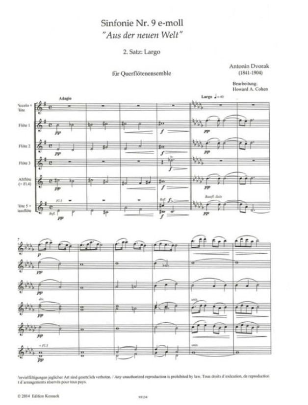 Antonín Dvořák: Sinfonie Nr 9 "Largo" (noty pro flétnový soubor, party, partitura)