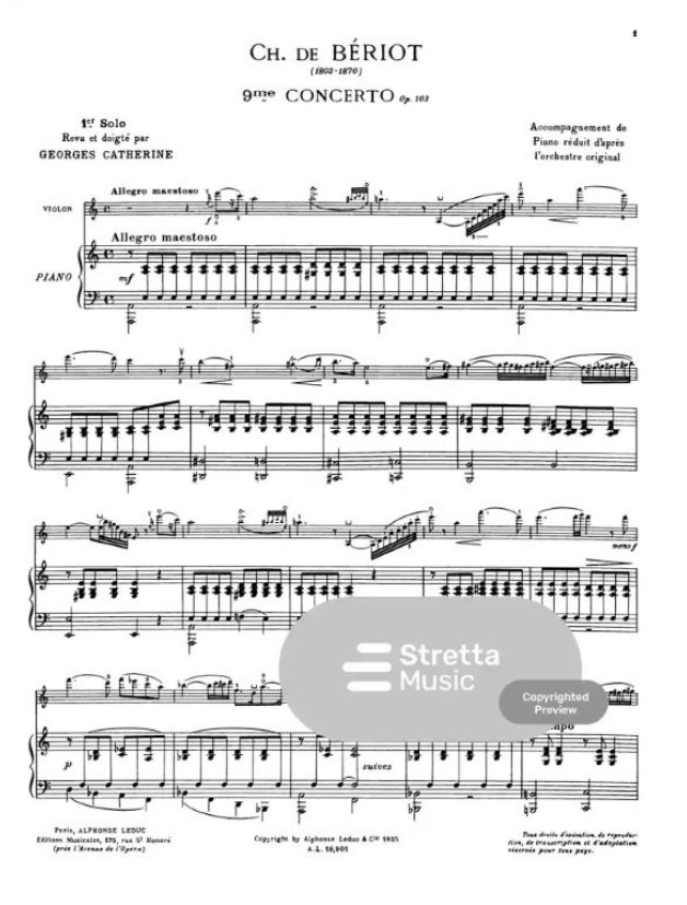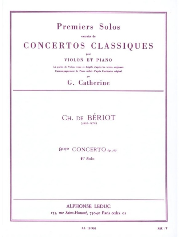 Charles Auguste de Bériot: First Solos extracted from the Classic Concertos (noty na housle, klavír)