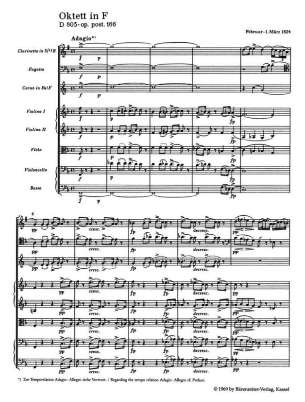 Franz Schubert: Octet In F Major Op.Post.166 D 803 (noty, studijní partitura)
