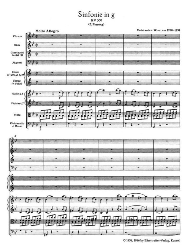 W.A. Mozart: Symphony in G Minor No. 40 KV 550 (noty, studijní partitura)