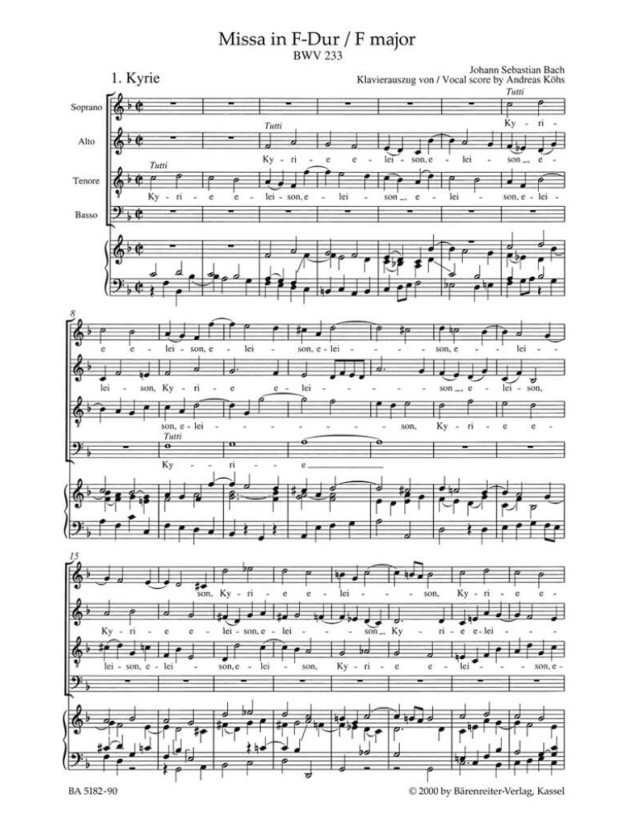 J.S. Bach: Mass in F major BWV 233 Lutheran Mass 1 (noty na klavír, zpěv)