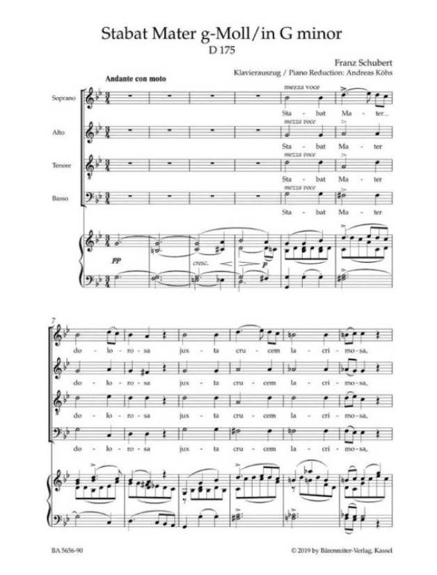 Franz Schubert: Stabat Mater G-moll D 175 (noty na klavír, zpěv)