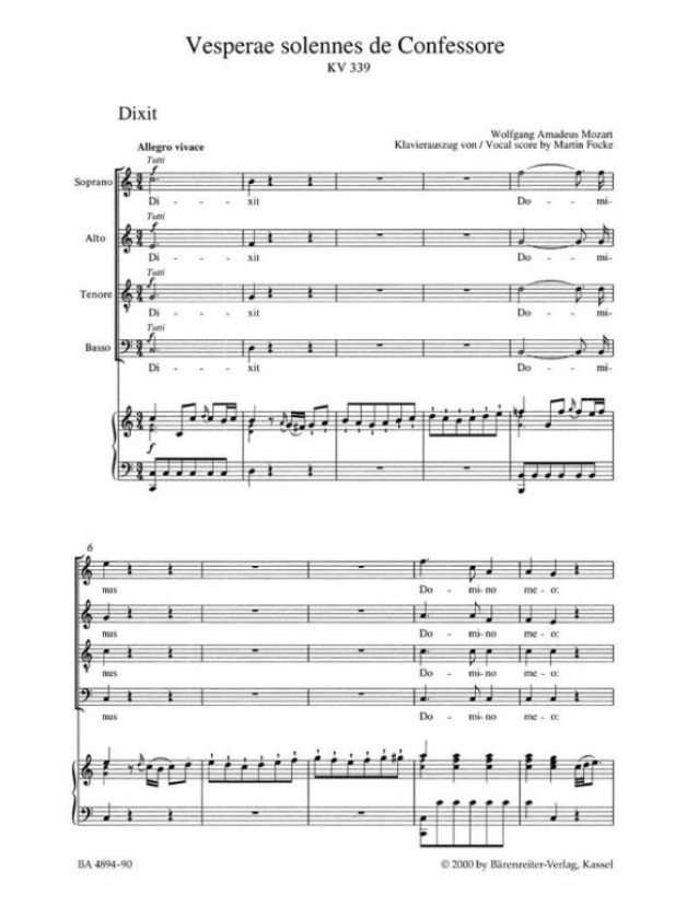 W.A. Mozart: Vesperae Solennes De Confessore K.339 (noty na klavír, zpěv)