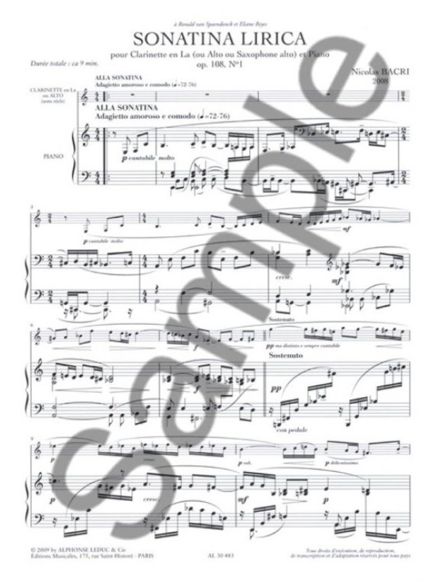 Nicolas Bacri: Sonatina Lirica Op. 108 No. 1 (noty na klarinet, klavír)