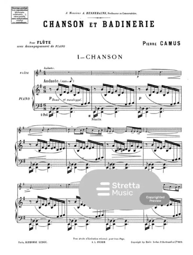 Pierre Camus: Chanson et badinerie pour flute (noty na příčnou flétnu, klavír)