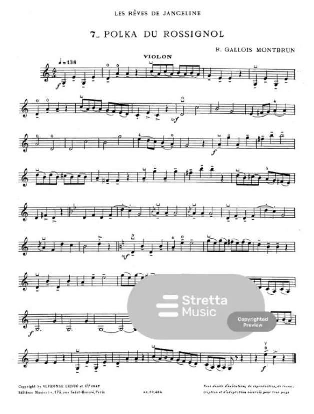 Raymond Gallois Montbrun: Les Reves De Janceline: Polka du Rossignol (noty na housle, klavír)