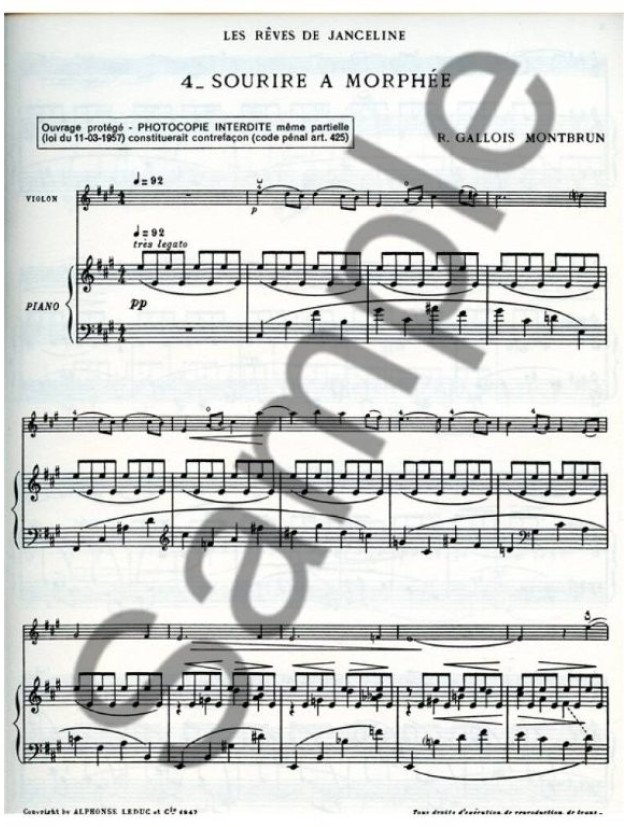 Raymond Gallois Montbrun: Les Reves de Janceline: Sourire a Morphee (noty na housle, klavír)