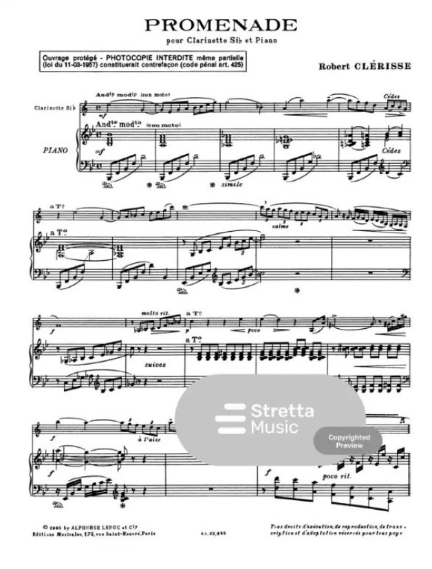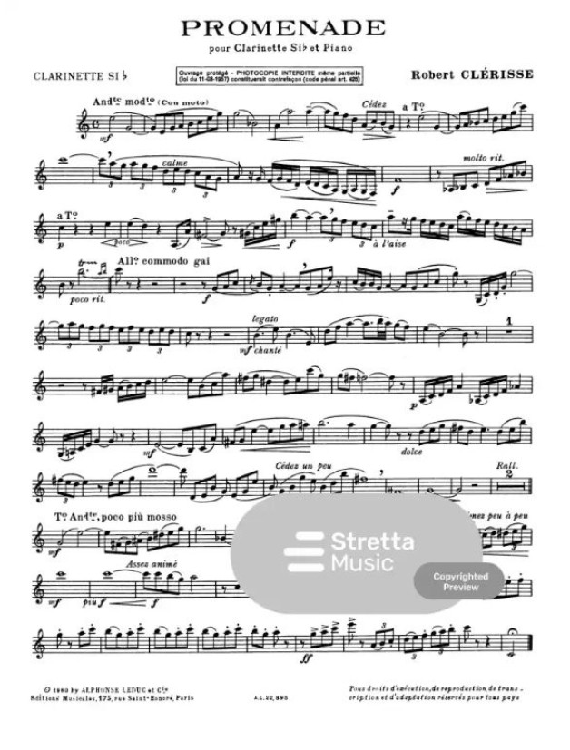 Robert Clérisse: Promenade (noty na klarinet, klavír)