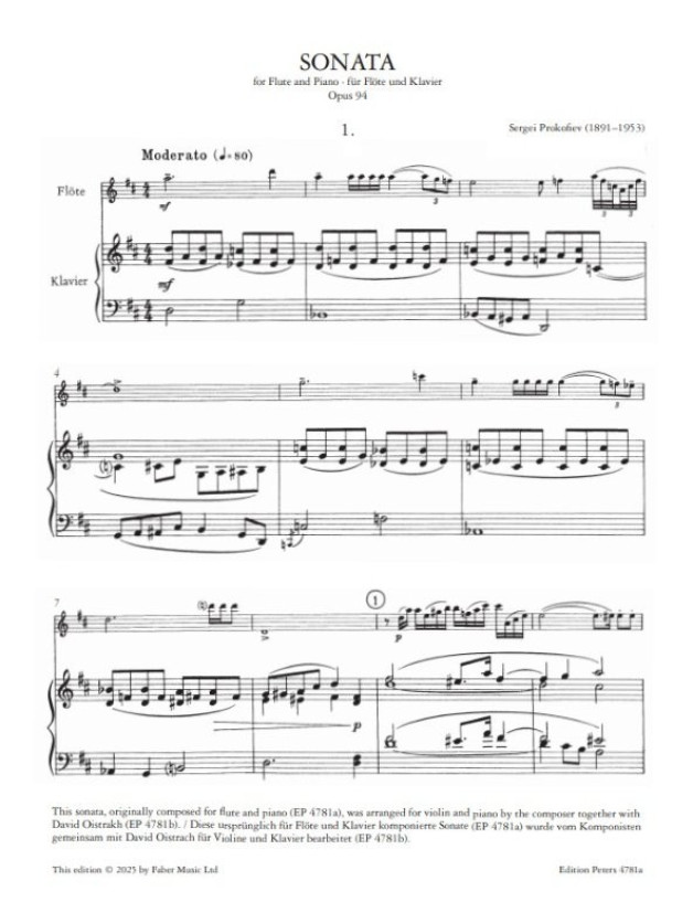 Sergej Prokofjev: Sonata Op. 94 (noty na příčnou flétnu, klavír)