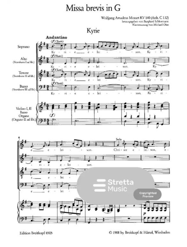 W.A. Mozart: Missa Brevis In G K.140 (noty na klavír, zpěv)