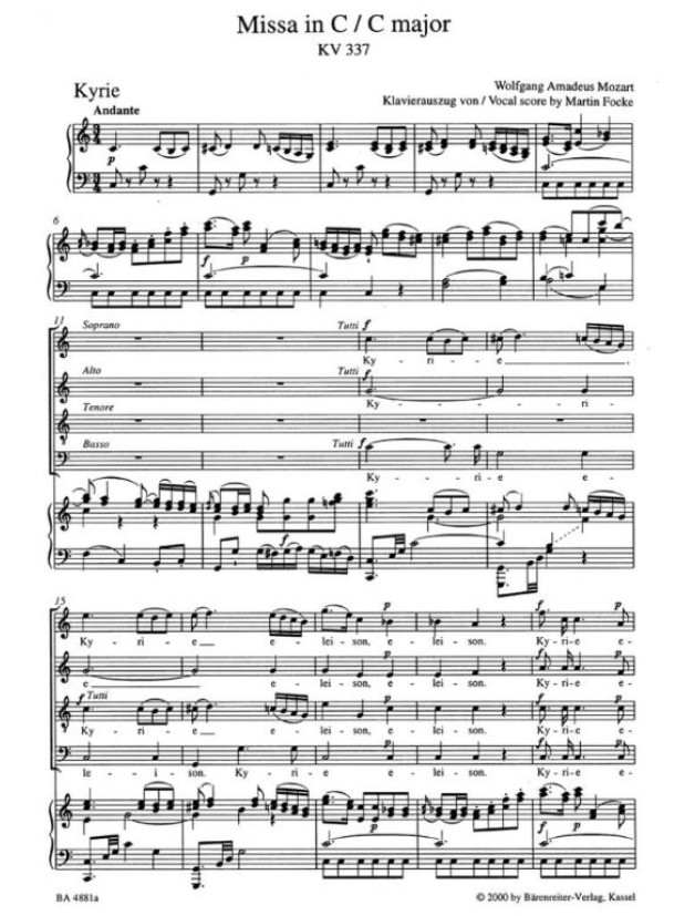 W.A. Mozart: Missa C-Dur KV 337 "Missa solemnis" (noty klavír, zpěv)