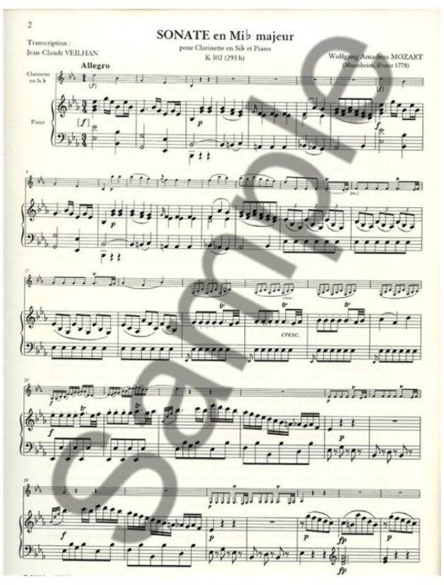 W.A. Mozart: Sonate En Mi Bémol Majeur K302 (noty na klarinet, klavír)